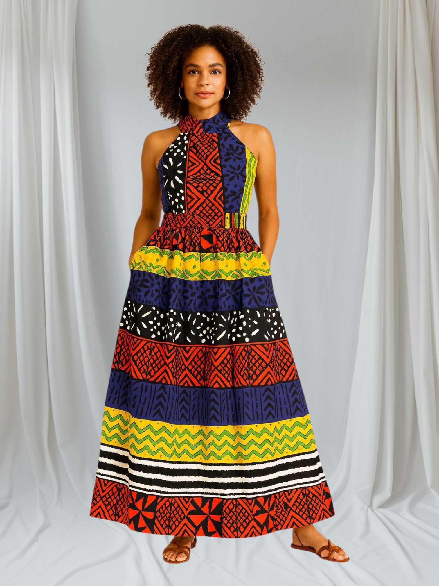 This dress has a twist of Afropolitan making it a Unique fusion of Bold African taste with adopted modern urban style. Can be dressed up or dress down to suit the occasion.