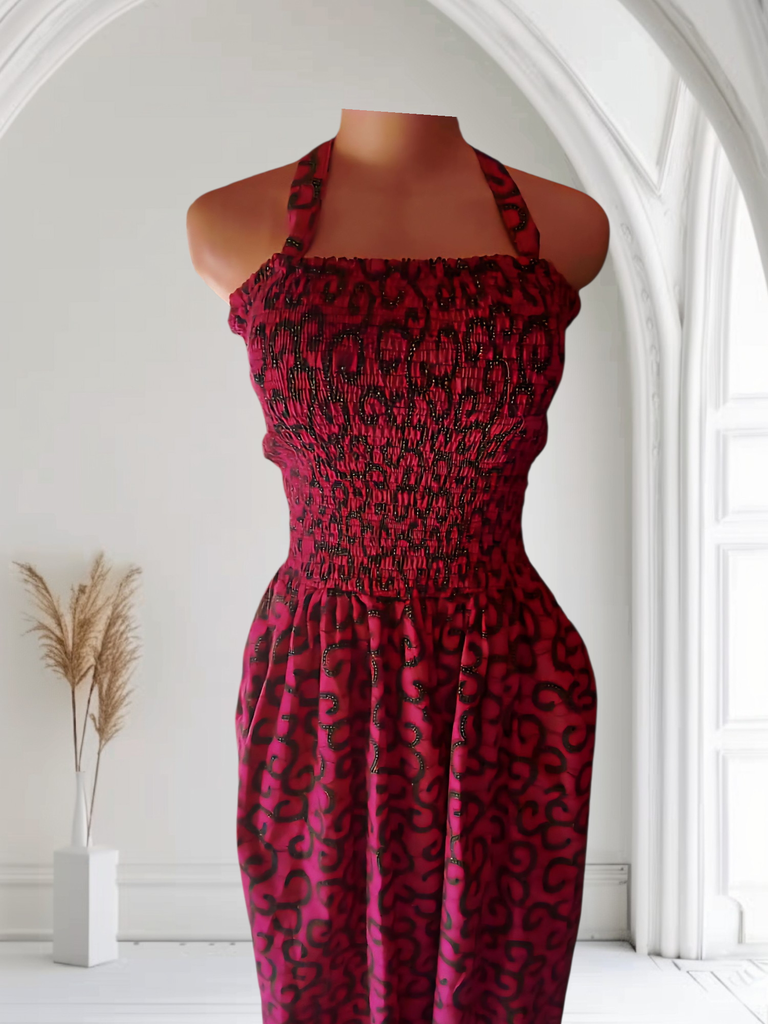 A Unique Elastic top Jumpsuit that hugs your upper body comfortably. Can be dressed up or dress down to suit the occasion.